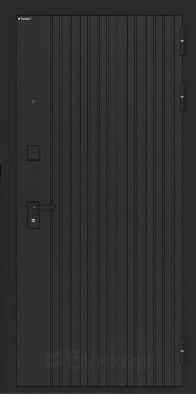 Черная матовая: Броненакладкая, сувальдные накладки со шторкой, ручка, ночник, цилиндр ключ-вертушка, глазок по центру или сбоку
