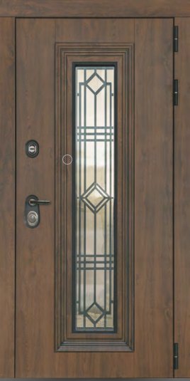 Цвет металла: Черный муар Внешняя отделка: МДФ панель 16 мм влагостойкая Дуб медовый + черная патина Декоративные МДФ наличники.